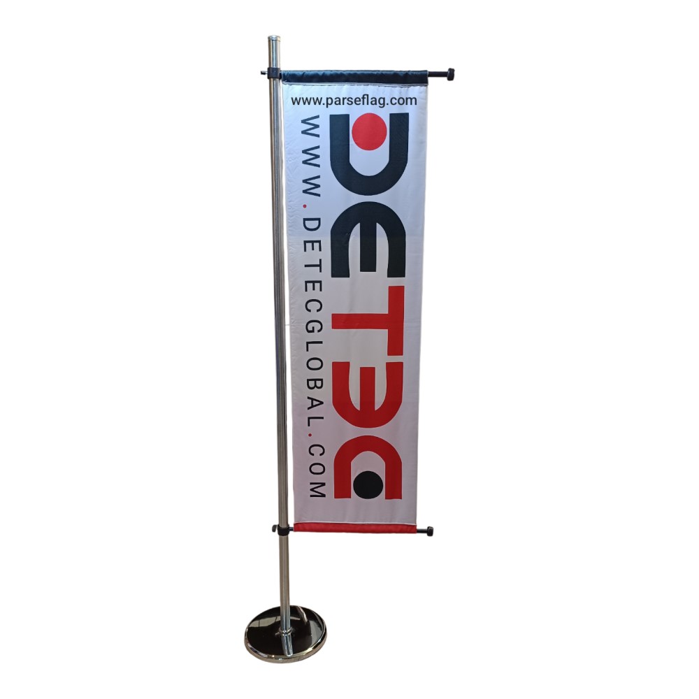 پرچم ایستاده یک طرفه که به نام پرچم ال نیز معروف می باشد جهت استفاده در پاساژها و فروشگاهها مورد استفاده واقع می گردد.به جهت ایستایی مطلوب و نمایان بودن پرچم ال این محصول کاملآ جذاب و چشم نواز می باشد و می تواند توجه مخاطبان را به پرچم شما معطوف نماید.ارتفاع پرچم ال بهمراه پایه پرچم حدود 220 سانتی متر می باشد و ابعاد پرچم به تنهایی 45در165 سانتی متر است. جنس پرچم از ساتن مات و بصورت دولایه می باشد و به همین دلیل امکان چاپ دو لوگوی متفاوت بر پشت و روی پرچم میسر می باشد.